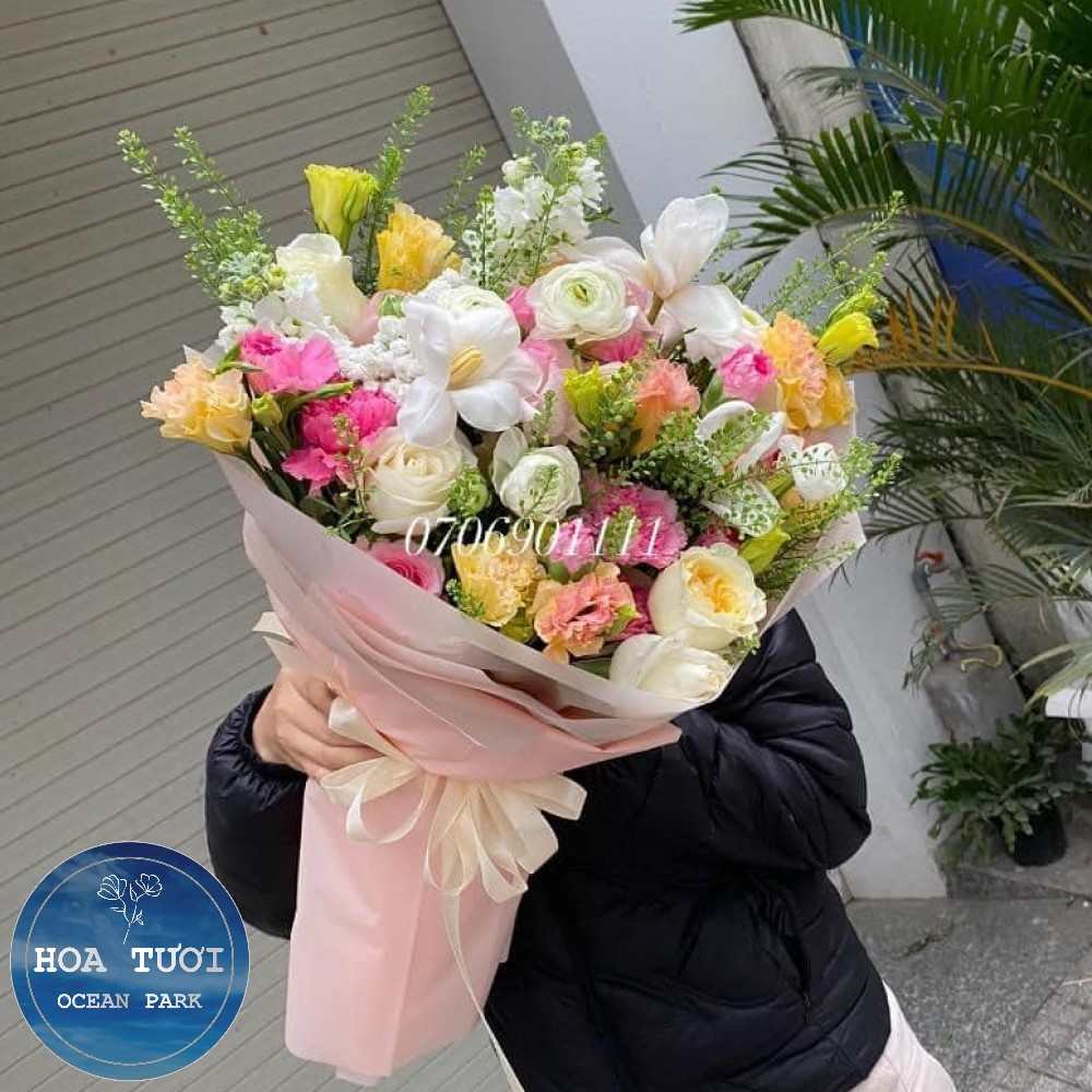 Lưu ý: Sản phẩm hoa mẫu chỉ mang tính chất tham khảo. Bởi một số loại hoa trong mẫu theo mùa sẽ không có hoặc chất lượng không đảm bảo, do đó chúng tôi sẽ dùng các loại hoa khác thay thế. Nhưng Hoa Tươi Ocean Park đảm bảo định lượng, tone màu, kiểu dáng cũng như chất lượng hoa tươi đẹp và đầy đặn nhất. Bạn sẽ nhận được ảnh hoàn thiện trước khi chúng tôi tiến hành giao hoa.