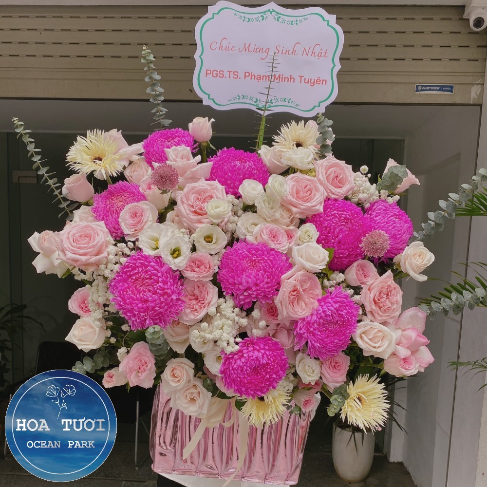 Lưu ý: Sản phẩm hoa mẫu chỉ mang tính chất tham khảo. Bởi một số loại hoa trong mẫu theo mùa sẽ không có hoặc chất lượng không đảm bảo, do đó chúng tôi sẽ dùng các loại hoa khác thay thế. Nhưng Hoa Tươi Ocean Park đảm bảo định lượng, tone màu, kiểu dáng cũng như chất lượng hoa tươi đẹp và đầy đặn nhất. Bạn sẽ nhận được ảnh hoàn thiện trước khi chúng tôi tiến hành giao hoa.